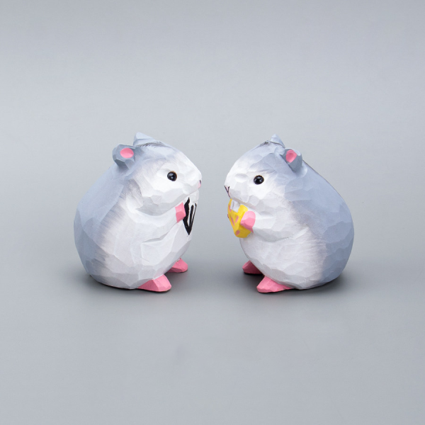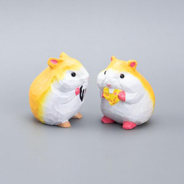 可愛卡通木質倉鼠擺飾 手工雕刻迷你裝飾品 療癒系居家辦公桌面擺設
