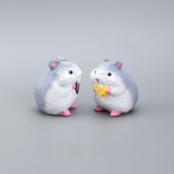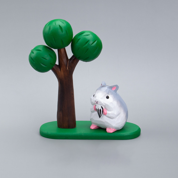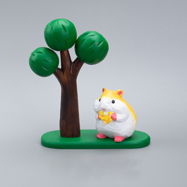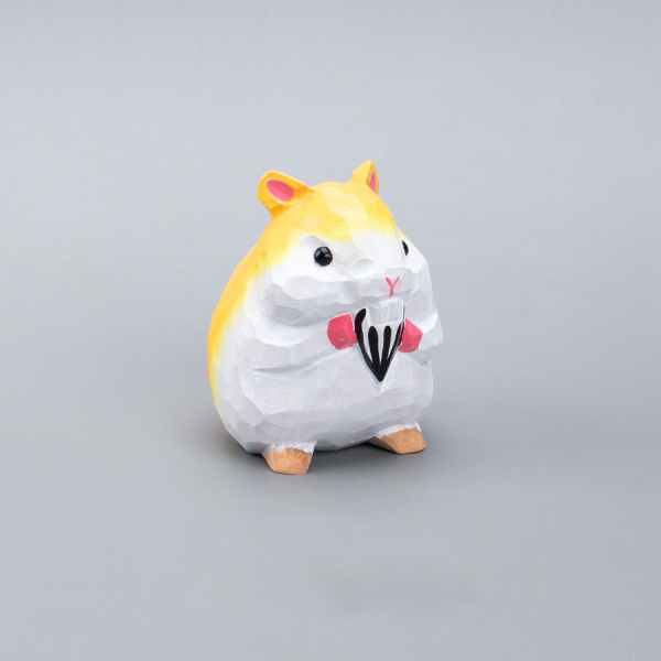 Cute Cartoon Wooden Hamster Figurine, Hand-Carved Mini Ornament, Healing Desk Decor for Home & Office